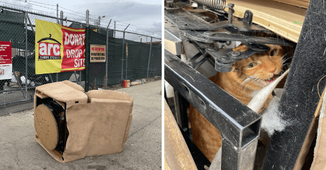 Happy Ending For Cat Who Hid In Armchair & Got Donated To Thrift Store By Mistake